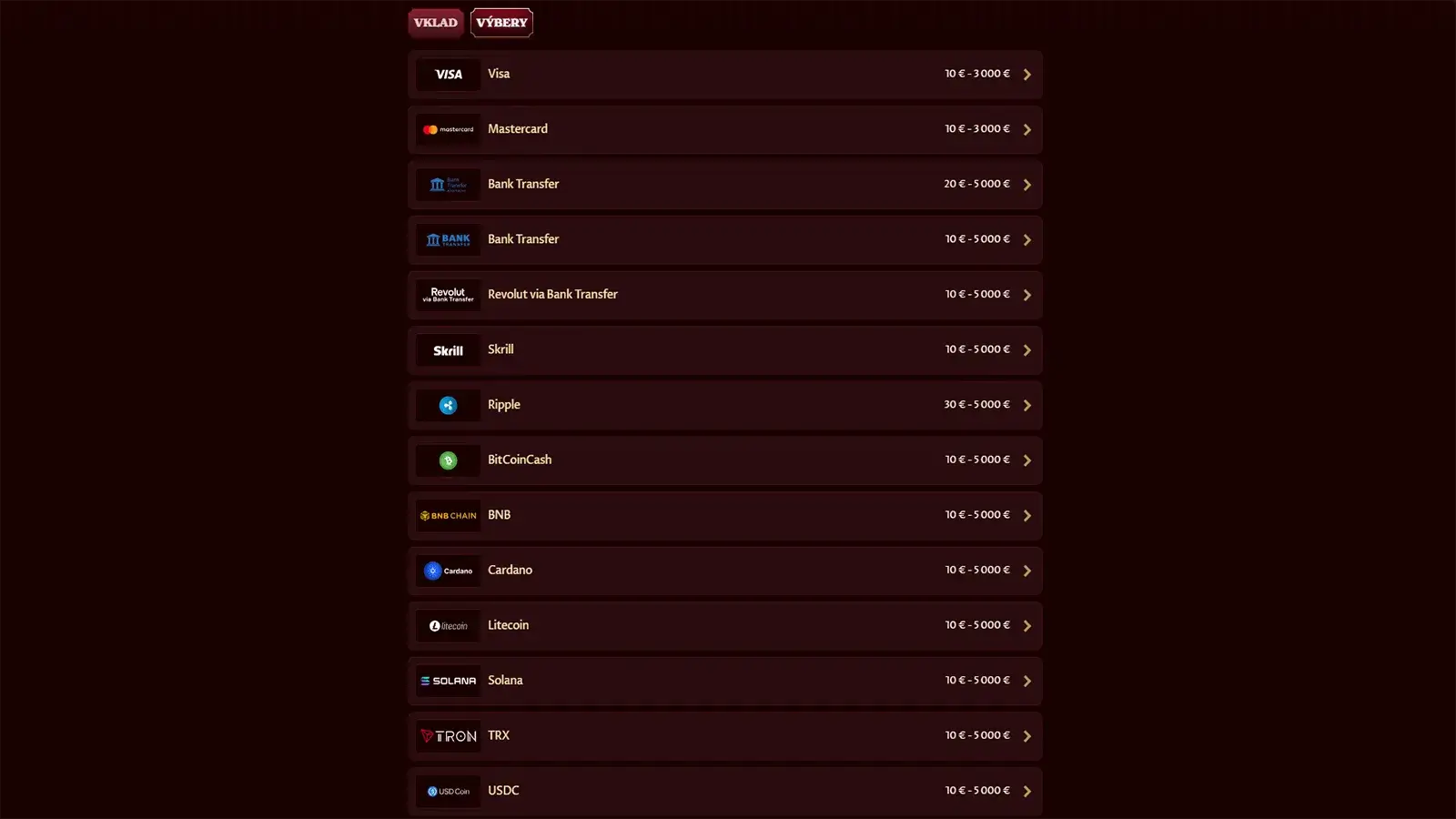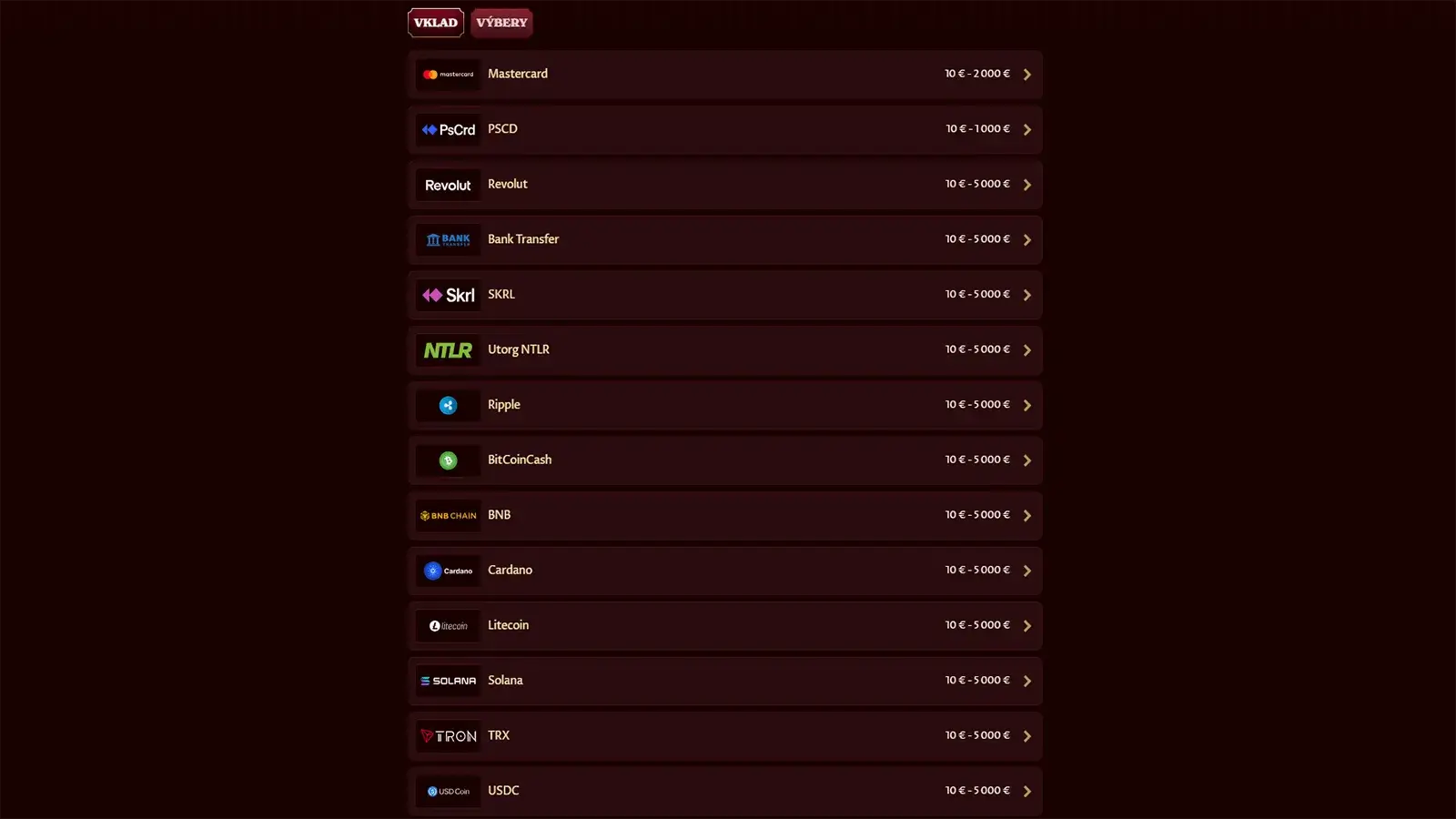 - Denné a mesačné limity výberu môžu závisieť od VIP statusu